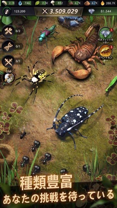 プレイヤーがアリ一族のリーダーとなり、アリの巣を発展して最強アリを育てていくゲームである。アリ一族生存のためにアリを孵化して強力なアリ軍団を作って敵と戦ったり、アリの巣を建設し強化したりしながら、アリの生き方を体験できる戦略シミュレーションゲームである!