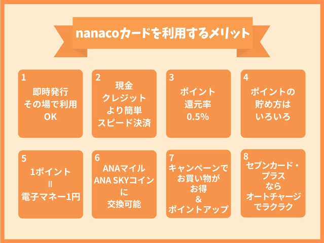 「ナナコ」はキリン「ナナコ」が特徴の電子マネーです。nanacoを利用するには、nanacoカードの申し込みやモバイルアプリのダウンロードが必要です。
