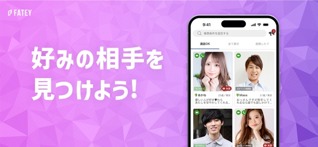 FATEYは、アプリを介してメッセージのやり取りを楽しんだり、通話を楽しんだりできる新感覚のチャット、通話アプリです。とくに、リアルタイムに会話ができるビデオ通話は、あなたの日常生活をより豊かにしていくでしょう!