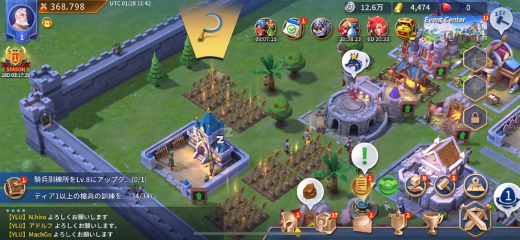 オーソドックスな城ゲーで自国を強化しつつ、主城をレベル上げる過程でお馴染みの施設を建設&レベル上げして戦力を上げていきます。