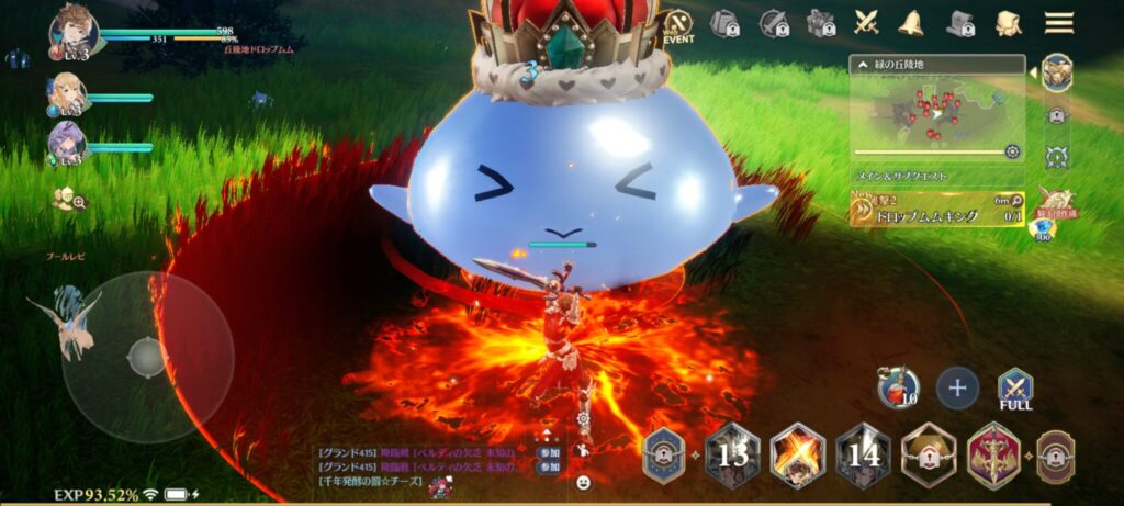 グランサガは仮想パッドでフィールドを自由に散策することもできますけど、クエストを進める時は画面右上のクエストボタンをタップすれば自動で進行してくれますよ!